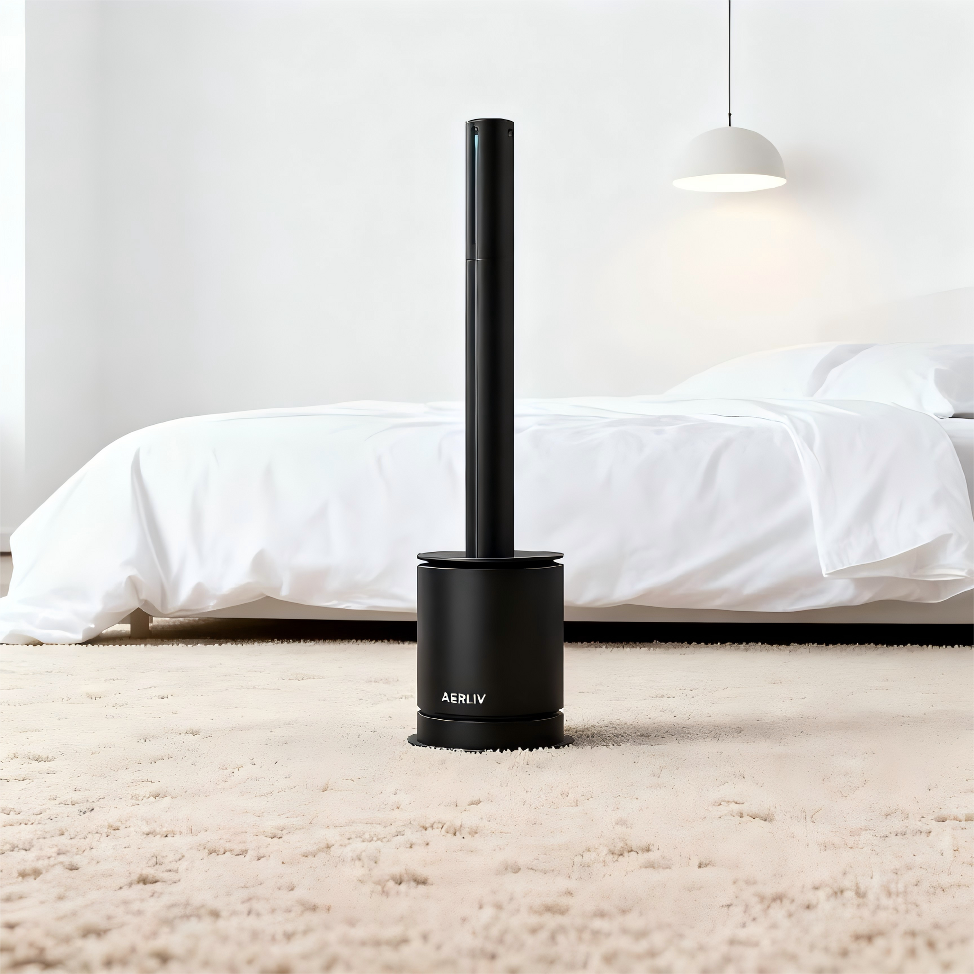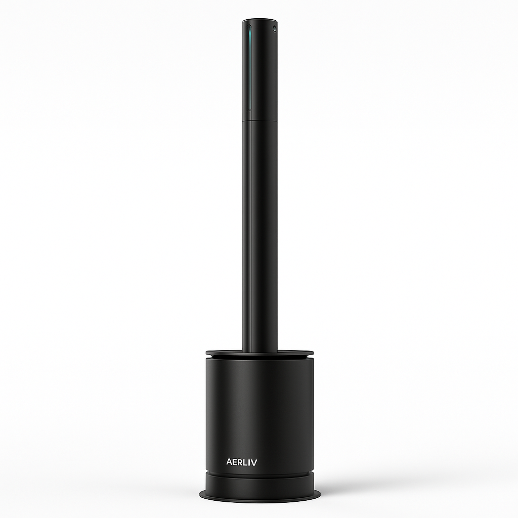 Tip-over shutoff and temp protection feel safe. DC motor runs quietly; sleep mode is gentle. 1–8h timer turns it off overnight. Invisible blades are easy to wipe clean weekly.