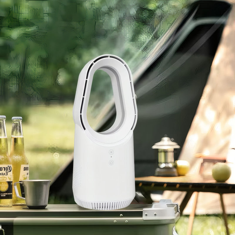 Stay cool anywhere with this USB-powered bladeless table fan. Featuring touch control and three adjustable speeds, it delivers a smooth breeze without exposed blades — safe, quiet, and easy to clean. The soft LED ambient light adds comfort and safety at night, while the lightweight design makes it perfect for home, office, or bedside use. Simply connect the included Type-C cable to any USB adapter for instant cooling comfort.