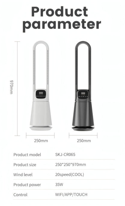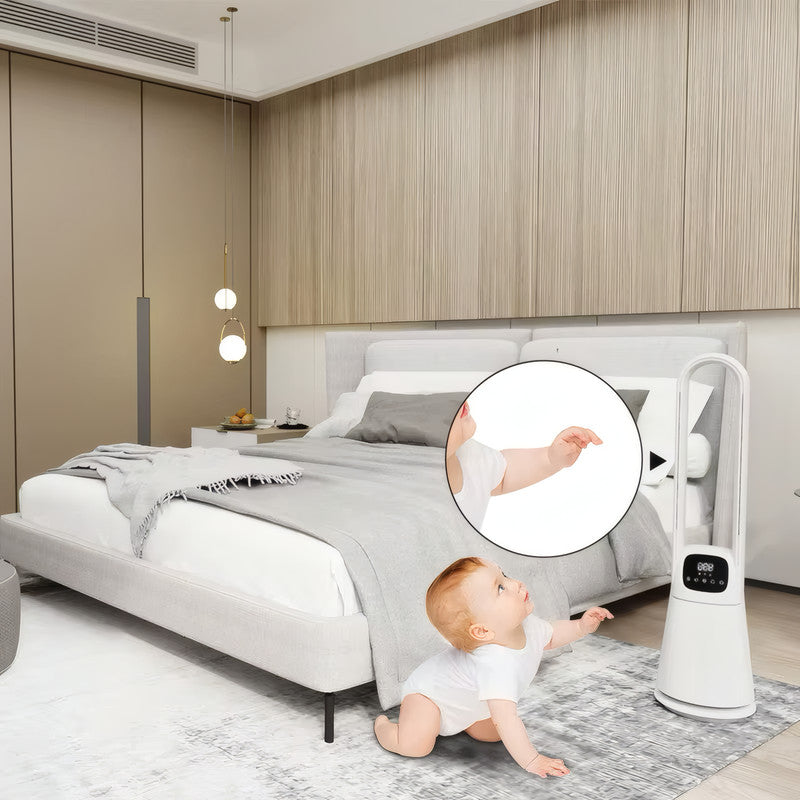 Bladeless Cooling Fan with Digital Display, Remote Control, 9-Speed DC Motor, and 8-Hour Timer