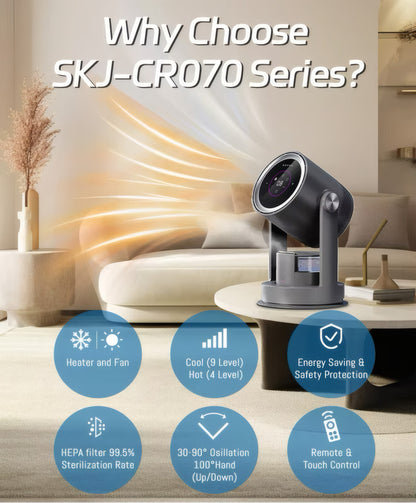 Experience cleaner and cooler air with this bladeless air circulator fan featuring a built-in HEPA filter. The powerful 9-speed airflow delivers strong circulation for any space, while the wide-angle oscillation—30°, 60°, or 90°—and 100° manual vertical adjustment ensure comfort from every angle. The HEPA filtration system captures up to 99.95% of airborne particles as small as 0.3 microns, helping reduce dust, pollen, and other allergens. With 5-color LED lighting and a convenient 1–8 hour timer, this fan provides comfort, style, and cleaner air for your home or office.